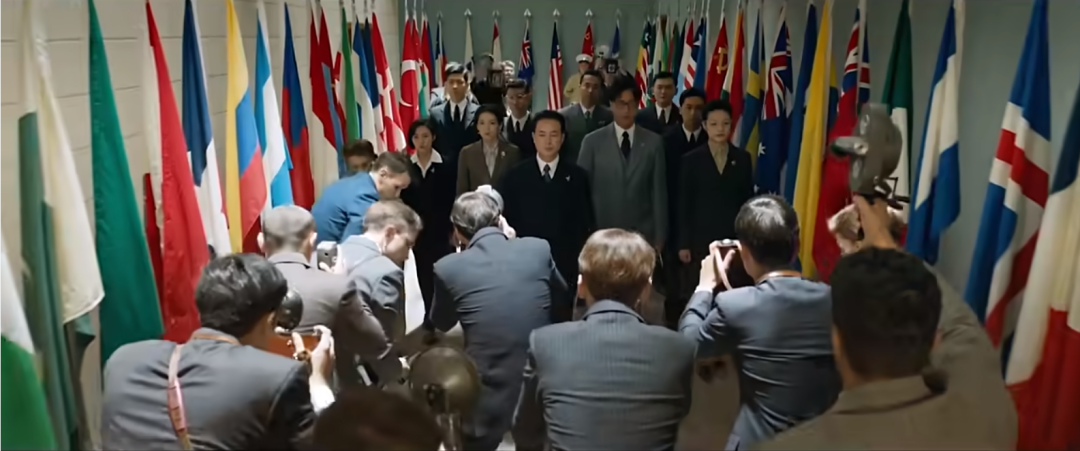 而在战场厮杀之外,片中对一场外交战场“激战”的描写,也令人印象深刻,也就是伍修权为团长的新中国代表团,在联合国安理会上,同美国的交锋。