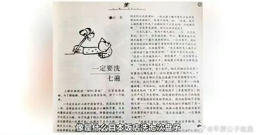 那个时代这种东西太多了,课本中充斥着《爱迪生救妈妈》、《落樱神斧华盛顿》之类的奇葩虚假故事,大记者堂而皇之伪造出《夏令营中的较量》,把日本小孩吹成人均奥特曼,把我们年轻的孩子叫做“垮掉的一代”……
