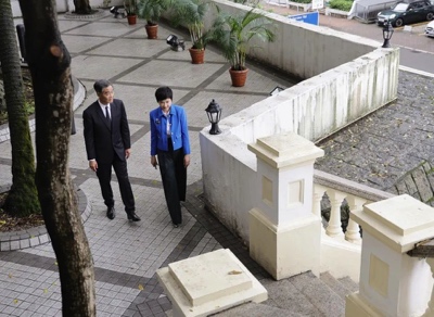 梁振英:家人都在香港。有一次,是个周末,有些暴徒在下面,警察放催泪烟,吹着他们往山上面跑,就跑到坚尼地道。我那个时候刚刚在办公室处理完一件事情,就从这个小铁闸出去,迎面就碰到三个暴徒。他们穿着黑衣,戴了面罩。其中一个暴徒自己低着头自言自语,他用粤语说撞邪了,回去要洗眼了……