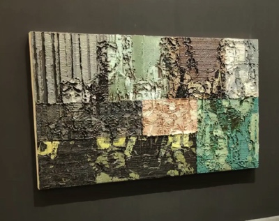下图是展览的画作,是一种类浮雕的画,是6名人物形象。