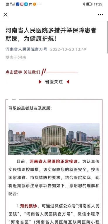 为了安抚民心,不致于造成更大民情波动,河南省人民医院就“多措并举保障患者就医,为健康护航”发出特别通知,告诉大家省医一切运转正常,奉劝大家莫信谣传谣。