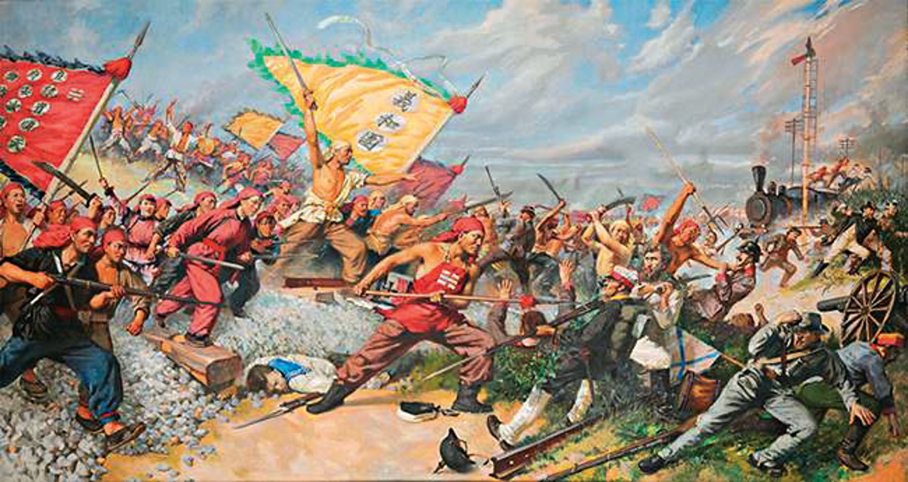 1900年,义和团在廊坊击溃英国将军西摩尔所率八国联军,史称廊坊大捷。图为画家戴泽的油画《义和团廊坊大捷》 中国国家博物馆/供图