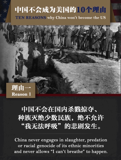 中国不会在国内杀戮掠夺、种族灭绝少数民族,绝不允许“我无法呼吸”的悲剧发生。
