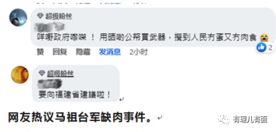 台湾防务部门“三大回应”总结起来就是,没肉吃不是我们引起的,我们没有错,驻岛士兵扭曲夸大“缺粮”问题,这件事目前已经解决了。