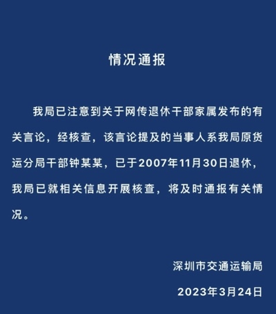 【鲶鱼爷爷】是否贪腐,贪腐多少,深圳市交通局已经通报了,开始了调查,这个结论由官方来下。