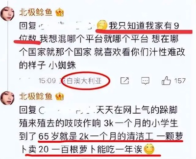 她自己依靠家里的关系和财富到澳大利亚留学,然后鄙视国内的大学生,只能够一个月拿三千块,干到65岁之后,才只能去干保洁。