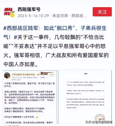 西部战区发声了,“人民子弟兵很不高兴!”人民日报也上场,指出笑果文化脱口秀演员House“李昊石”片面追求笑果而不惜踩线,严重伤害民族情感。对人民子弟兵毫无敬畏之心,完全没有自己的职业底线,这是对我们子弟兵尊严的践踏!