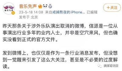 “笑果”案发之后,马上就有人开始带节奏,假借一个手续不齐全的日本和尚乐队演出被取消,说所有涉外乐队被禁止演出,说的言之凿凿,再加上盖戳的通知,连笔者都上了当。