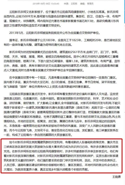 总之云阳县这一系列操作,对于当地村民尤其是彭氏宗族后人来说,无疑是一件大好事。可以说在保护传统文化和开发旅游资源方面做到了两不误,在乡村振兴上也是焕发着生机活力。这不就是我们希望看到的吗?