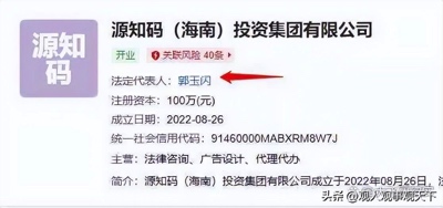 再深查,与其相关联公司的“源知码”公司全称是源知码(海南)投资集团有限公司,法定代表人郭某闪,持股65%。