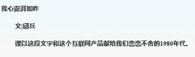 "仅以此段文字和这个互联网产品献给我们恋恋不舍的1980年代"