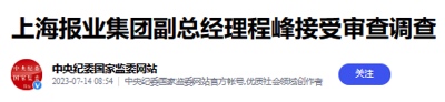 澎湃集团董事长、上海报业集团的副总裁程峰(51岁)“涉嫌严重违纪违法”也被带走调查了。