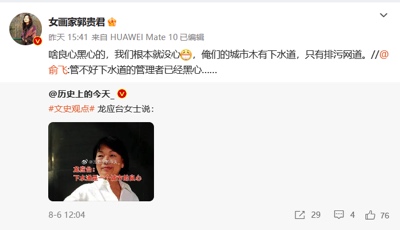 古墓级公知龙应台的那个下水道论早就被网民用事实揭穿无数次、嘲笑无数次,都变成最让人恶心也最搞笑的梗了,可是这个女画家居然还当成真理,更甚至于造谣天津或者我们国家的城市“没有下水道,只有排污管网。”