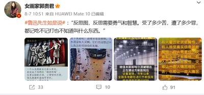 这个女画家在微博上的账户叫做“女画家郭贵君”,是个金V,老厉害了。昨天,她发的一个帖子,引众多网民围观。
