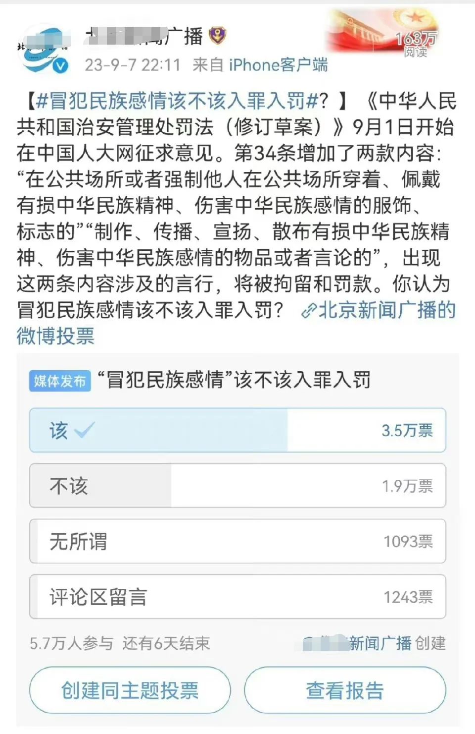 更可笑的是我看见另外一个事情:有一个蓝V媒体搞了一个投票,它做了大量的引导,希望大家投出反对票,来证明他们反对这个修改是正确的。