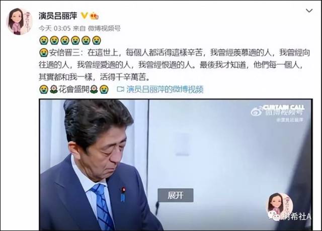 就在去年安倍晋三遇刺时,吕丽萍得知消息后如同晴天霹雳一般,当即便痛哭了起来,似乎是一个人痛哭还不够,还要发到社交平台上要网友们和她一起共情。