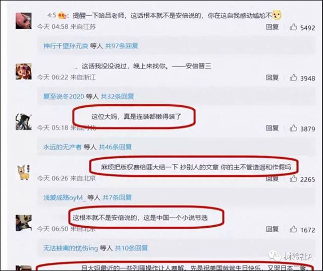 如果是不知情的人看到或许还会感叹一声吕丽萍对安倍晋三还真熟悉,连他说过什么话都记得这么清楚,不过可惜的是安倍晋三根本没有说过这番话。