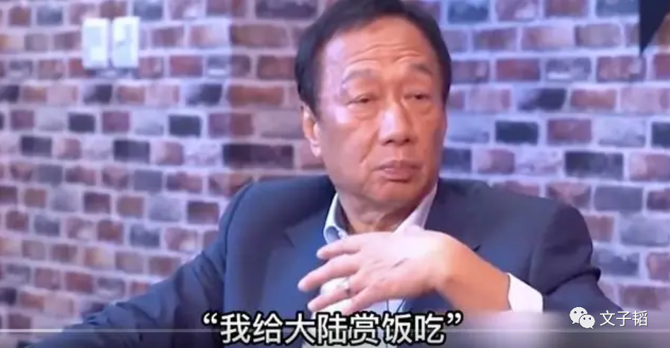 现在郭台铭还再说是给大陆赏饭吃。文子韬认为郭台铭始终没有明白,不是富士康牛,而是苹果产业链牛。