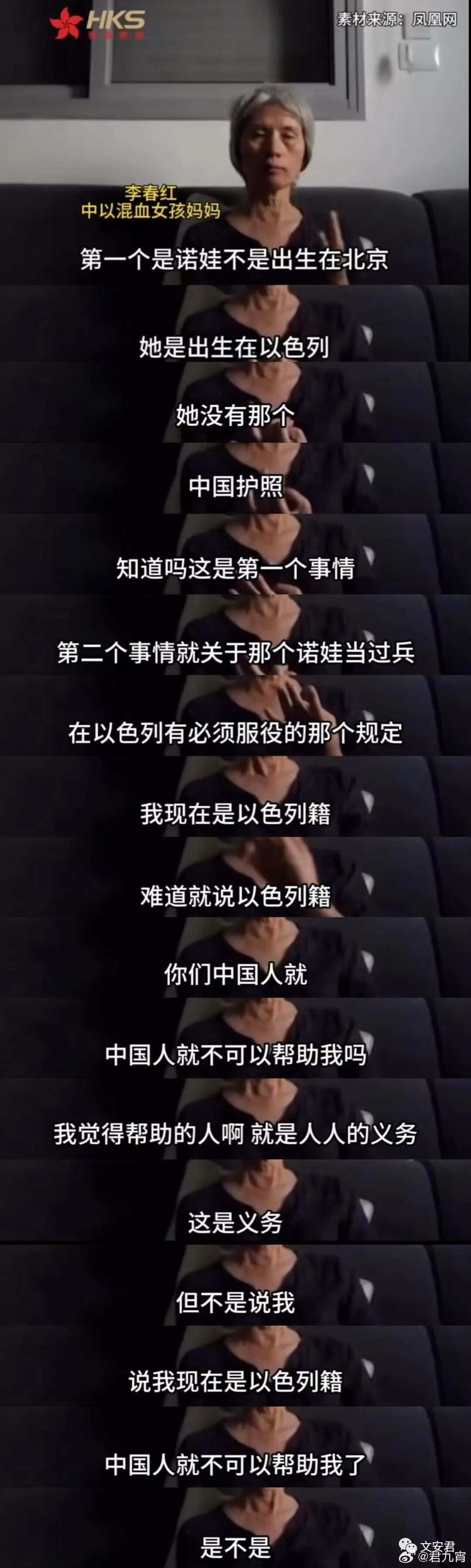 1. 留学时叛逃,嫁给以色列人取得以色列国籍的高华老仙女——以色列女兵诺雅的母亲,李春红,现在突然改口说“我是中国人”了。