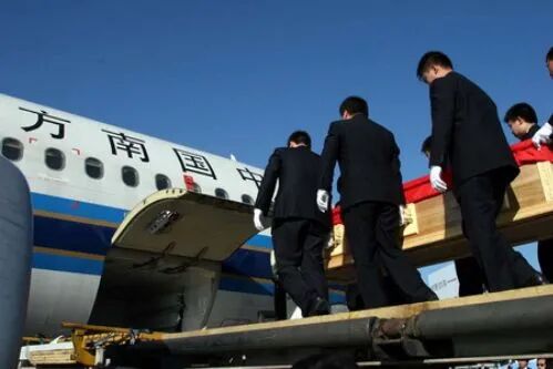 霍英东先生的灵柩在覆盖上国旗后,被专机运送到香港,走的是北京机场南停机坪,国家领导人外访专用的停机坪。