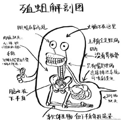 这两天,在网上捡到一张“殖蛆解剖图”,不知道是哪位大神画的,但图片确实很传神,在这里,向这位“灵魂画师”致敬!