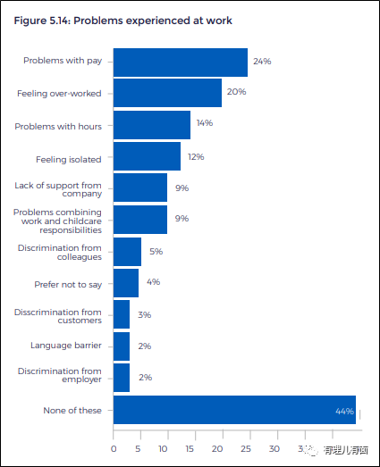并且,在已经从事工作的那些人里面,也并没有那么好过,24%的受访者对收入表示不满意,还有不少人认为自己工作负荷过大、在单位被孤立以及正面临来自同事的歧视。