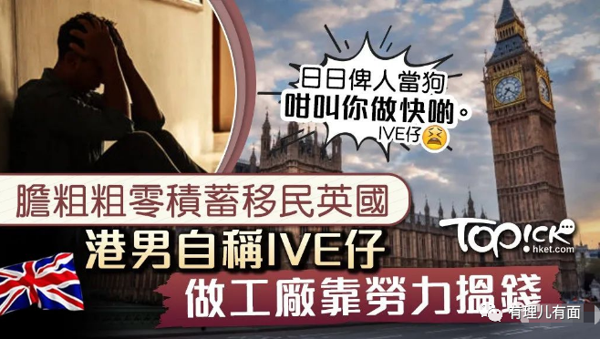 有移民英国的港人表示,自己几个月都找不到工作,即便找到工作,也大多从事“开车送货、送外卖、清洁、仓库管理”等体力工作,与在港的状态天差地别!