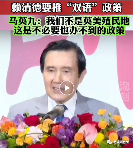 马英九公开表示,我们不是英国或美国的殖民地,“双语政策”是既无必要,也办不到!