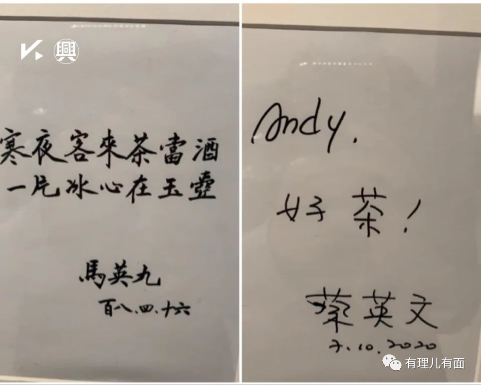 在社交平台上曾流传过一个这样的笑话,让蔡英文和马英九分别写一段夸赞好茶的句子,马英九写的是“寒夜客来茶当酒,一片冰心在玉壶”,而蔡英文就写了两个字“好茶”。