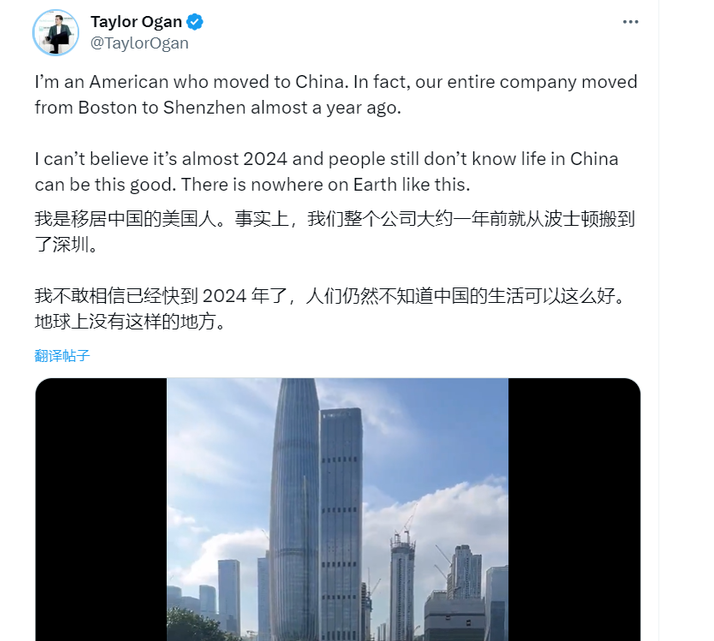 2023年初,美国一个名叫Taylor Ogan的创业公司老板把他的公司从美国波士顿整体搬到了中国深圳。