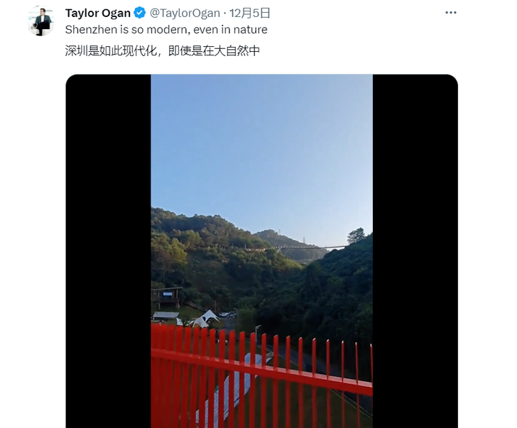 他在推特上发过一条内容“深圳如此现代,却又让你置身于大自然之中”