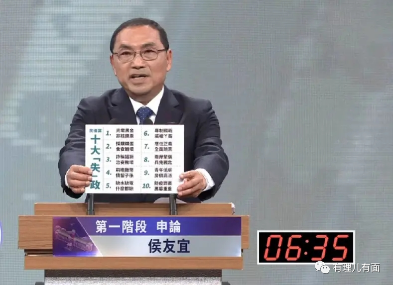 侯友宜在申论阶段就举起了小牌牌,控诉了蔡英文政府的十大罪状: