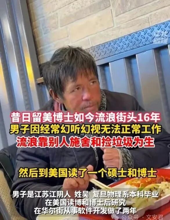 他从复旦留美博士,沦为流浪汉的人生际遇,落差看上去很可怜,