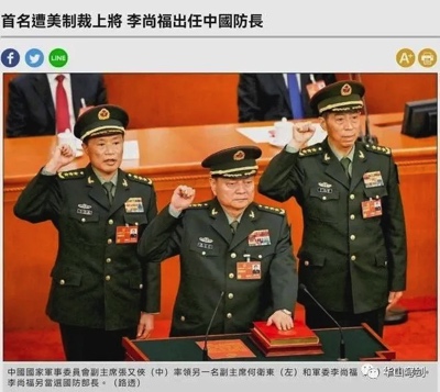 因为,李尚福2018年在当解放军装备发展部部长时,被美国宣布为被制裁对象。