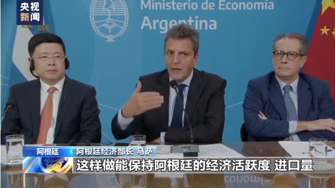 第一条:当地时间4月26日,阿根廷经济部长马萨召开新闻发布会,宣布阿根廷将停止使用美元、转而使用人民币来结算从中国进口的商品。