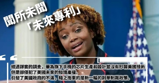 白宫新闻秘书皮埃尔声称,经过经过详实的调查,认为华为旗下手机的芯片生产和设计并没有抄袭美国技术,但是却侵犯了美国未来的知识产权。