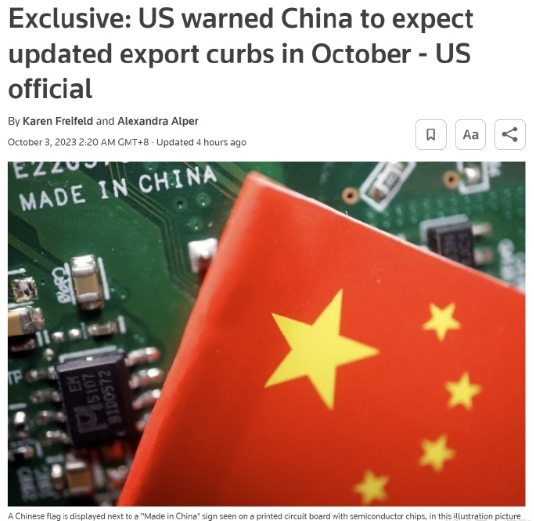 接着,据美国媒体的报道,美国政府给我国发出新的警告,要在10月推出对我国科技战的新措施:更新对我国在人工智能芯片和芯片制造工具出口的相关限制,以配合荷兰和日本的新规定,进一步限制对华出口芯片制造工具和填补人工智能芯片出口限制的一些漏洞。