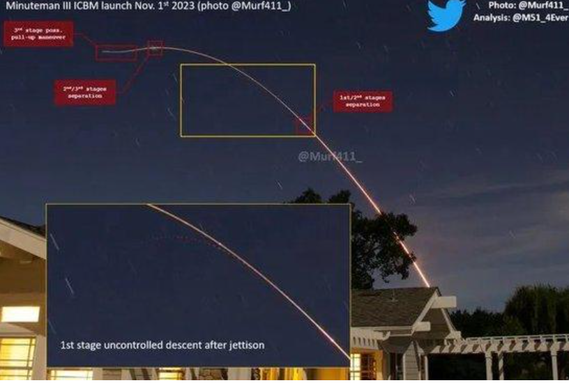 11月1日,美军在加利福尼亚州沿海地区进行了“民兵III”型洲际弹道导弹试射,发射之后,大家就发现其飞行轨迹不正常,偏离了预定路线,最终美国空军只能被迫在太平洋上空引爆了该导弹。