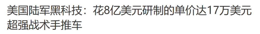 美军只会骗经费,百亿美元造个屁用没有的朱姆沃尔特,600万美元买几只羊,一万美元买个马桶盖,8亿美元研发了一个单价17万的“手推平板车”……号称“先进全地型力量增强静音战术推车”。