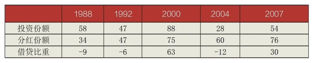 表1 1988~2007年美国企业税后利润分配(单位:%)