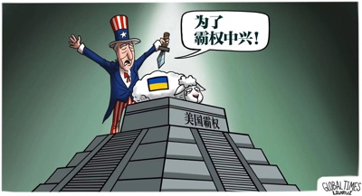 ▲美国的如意算盘:靠牺牲乌克兰控制欧洲,削弱俄罗斯,给“霸权中兴”祭旗。(漫画|刘蕊)