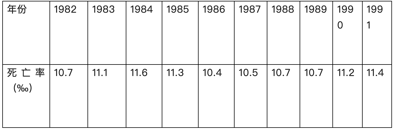 表:苏联解体前十年俄罗斯人口死亡率