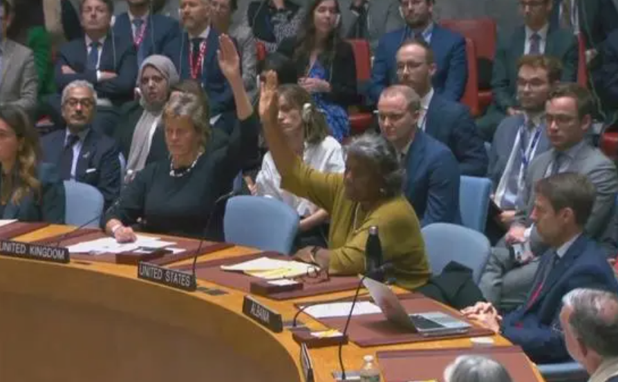 10月18日,联合国安理会第二次就巴以问题决议草案进行投票。中国等12国投票赞成,美国1票反对,其他2国弃权。由于美国为安理会常任理事国,因此决议未能通过。看清楚,只有美国投了反对票!