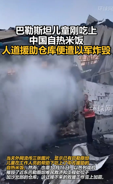 我们给巴勒斯坦送去了粮食,让加沙的孩子吃上了自热米饭,然而转眼之间,以色列就炸毁了存放粮食的人道援助仓库……