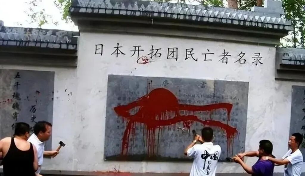 2011年日本人花钱在黑龙江方正县立碑,纪念侵华日军,不过他们把这些倭寇改名叫“开拓团”,是为大日本帝国开疆拓土的勇士,在东北沦陷的十四年时间里,日本开拓团对东北地区的百姓任意欺压,抢占土地、掠夺资源。但是他并不顾中国人民的感情,认为纪念自己国家的英雄是理所当然的事,后来这碑被发现,中国人给砸了。