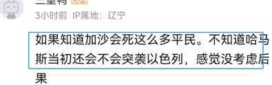 这两天,有种声音说巴勒斯坦人的悲剧要怪就怪哈马斯,如果哈马斯不反抗,以色列也许就不会屠杀巴勒斯坦人了。这就好比说当年中国人要是不反抗,日本鬼子就不会杀中国人、不会侵占中国的土地了一样。他们不怪侵略者的凶残,反而把矛头指向勇于反抗的人,恕我直言,这是对侵略者天大的误解。侵略者会因为你的软弱就放下屠刀吗?恰恰相反,它们只会变本加厉。