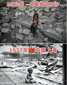 这十来天,我们为巴勒斯坦人倾注了太多感情,为什么我们会如此同情巴勒斯坦人,为什么我们的眼泪会为万里之外的巴勒斯坦人而流?不仅仅因为他们是弱者,还因为他们的命运与80年前的中国人实在太像了。