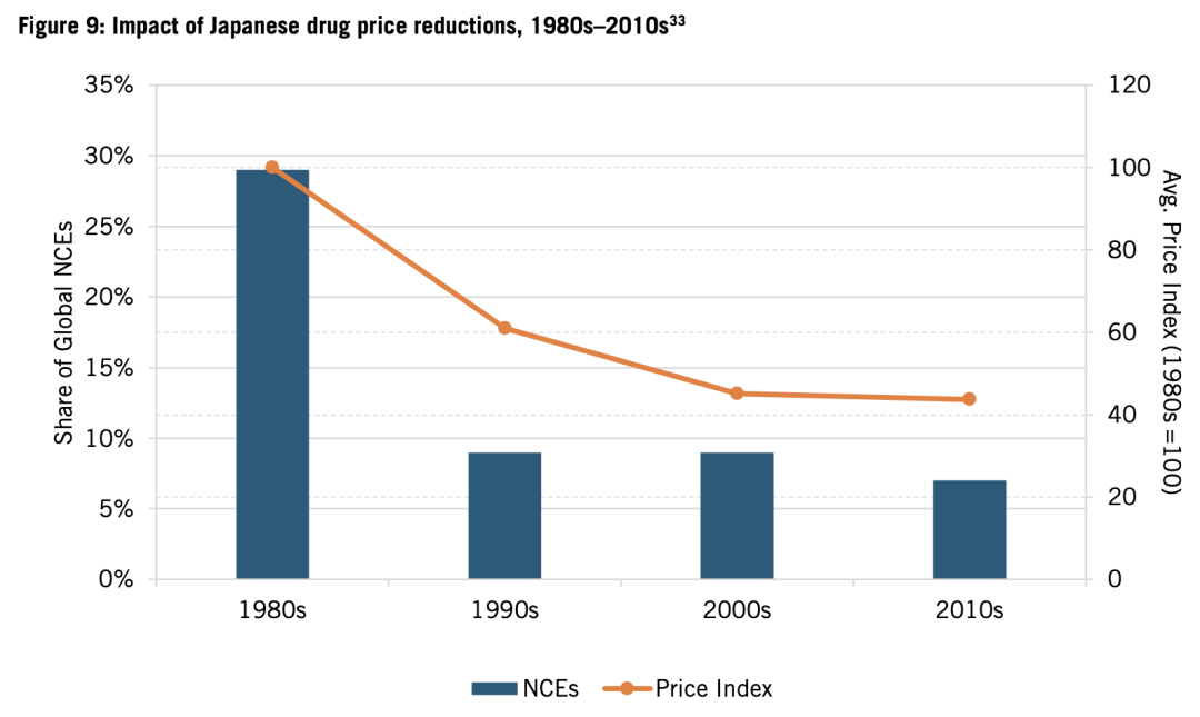 日本的药品价格管控政策持续了几十年,很大程度上剥夺了药企投资未来几代创新药物研发所需的利润。随着日本NCE数量不断下降,这一观点开始引起共鸣。